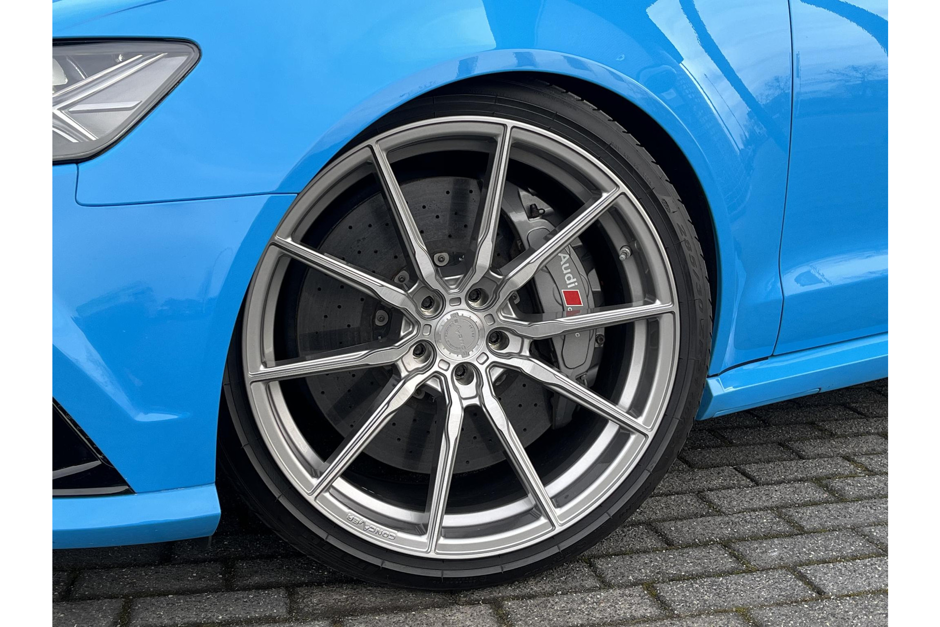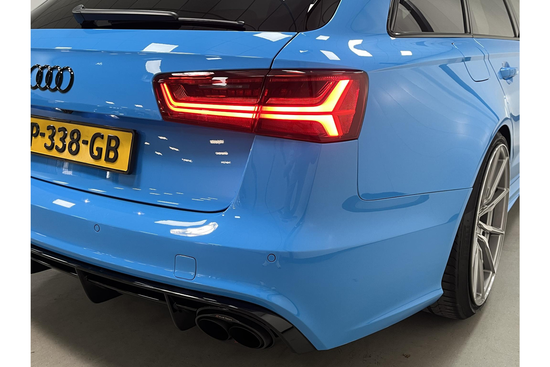Bijzonder nette en uniek gespecte Audi RS6 Avant performance in de Porsche kleur Rivierablau (Audi Individual Exclusive)