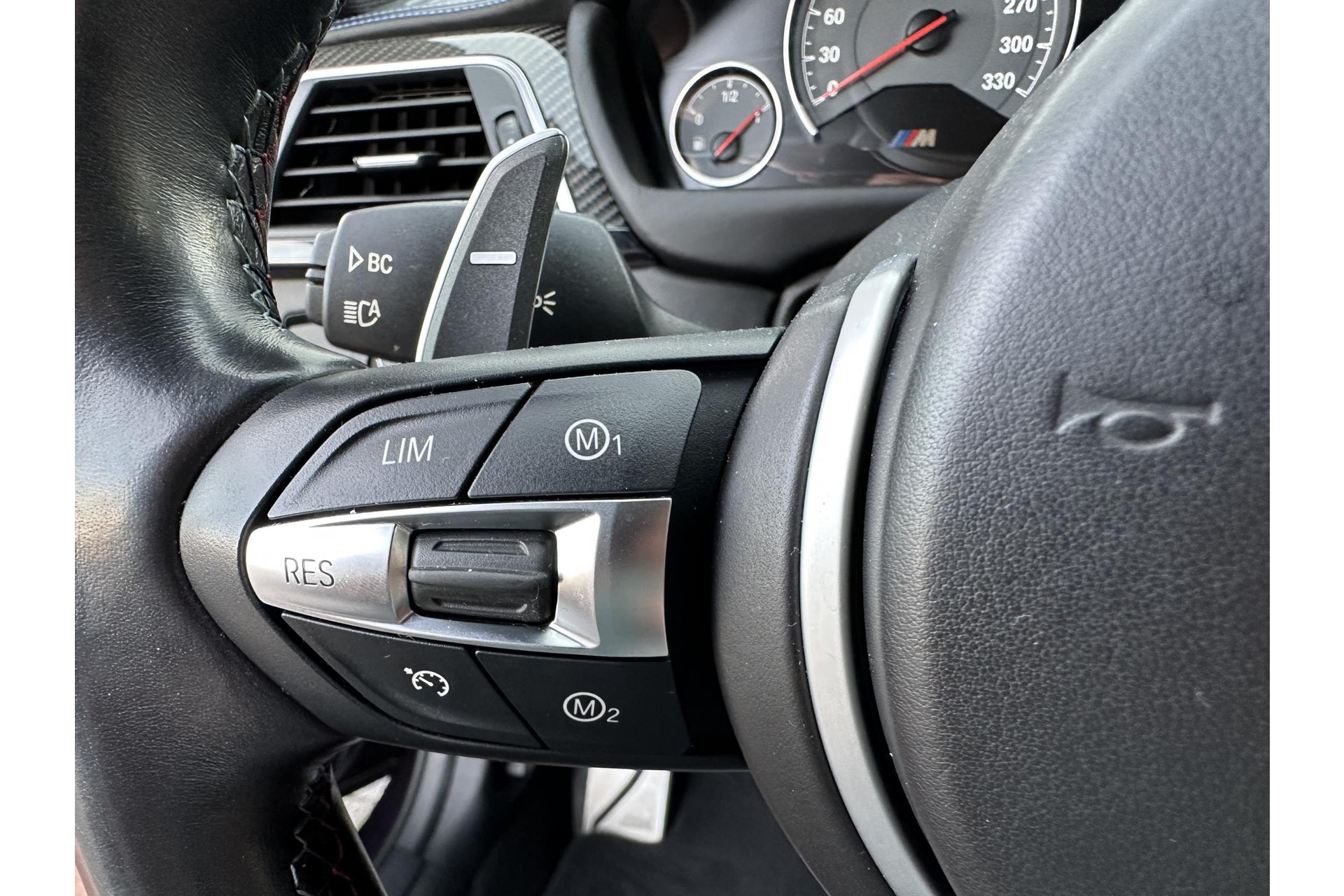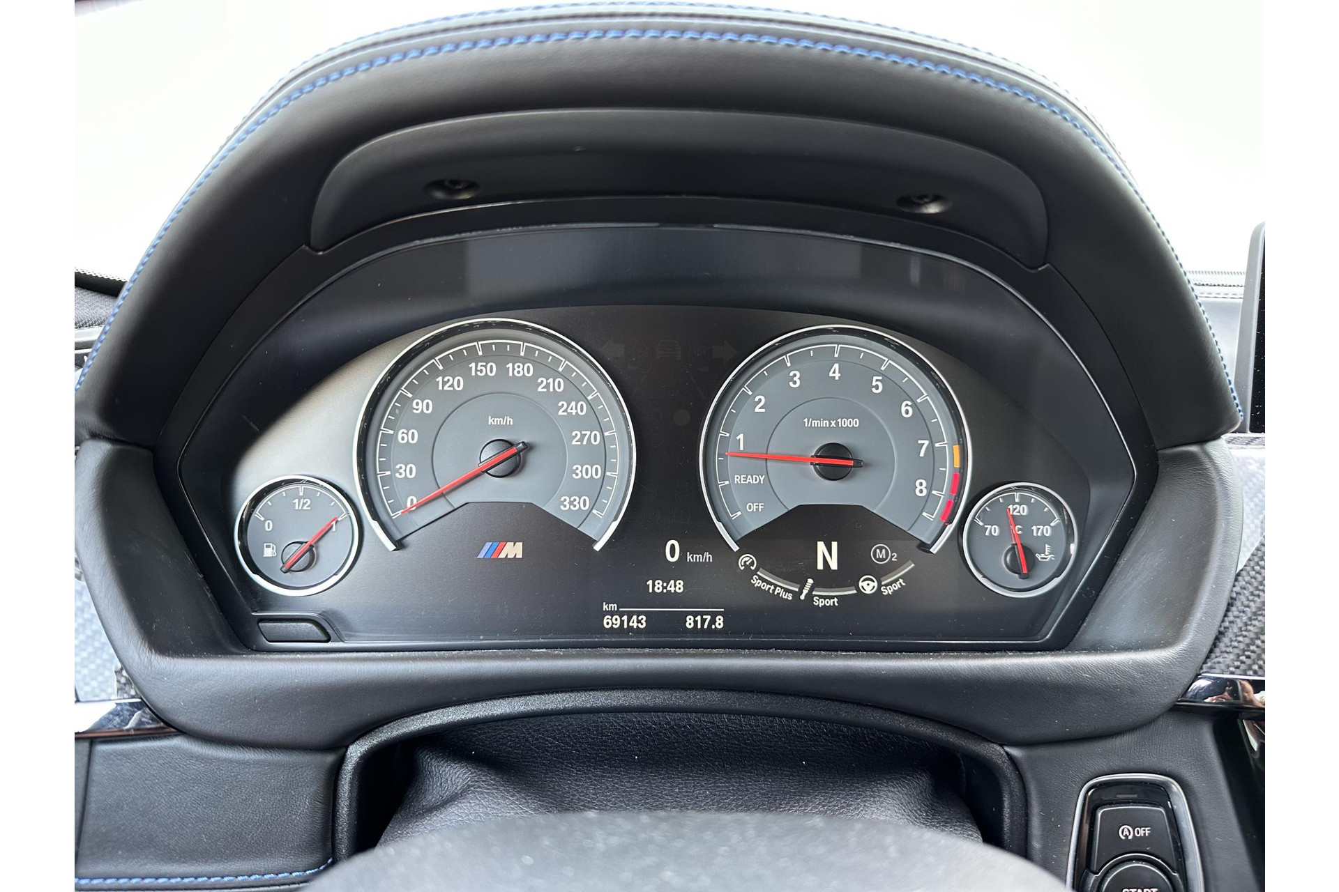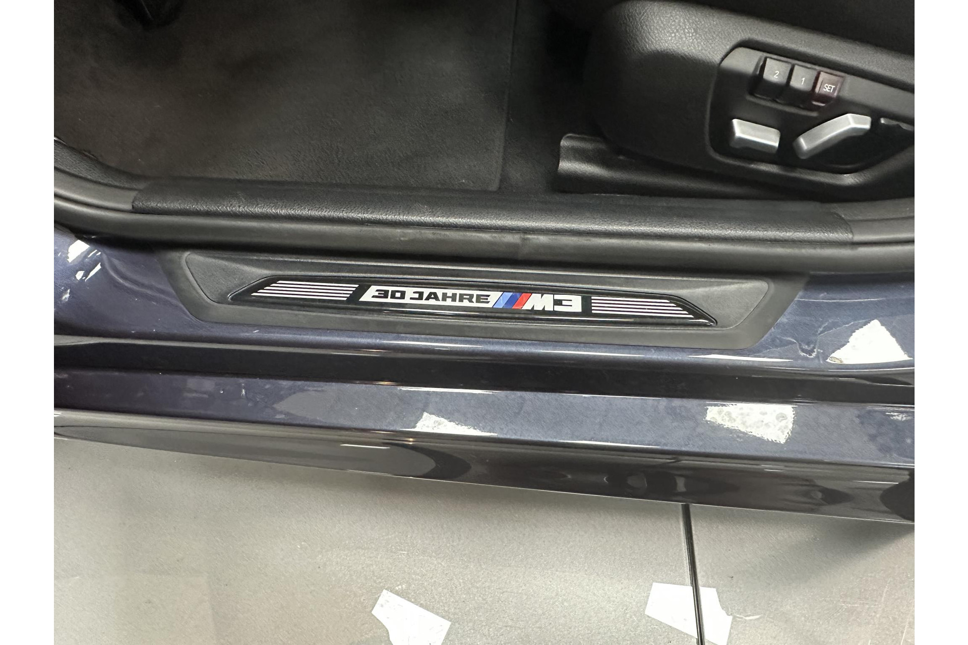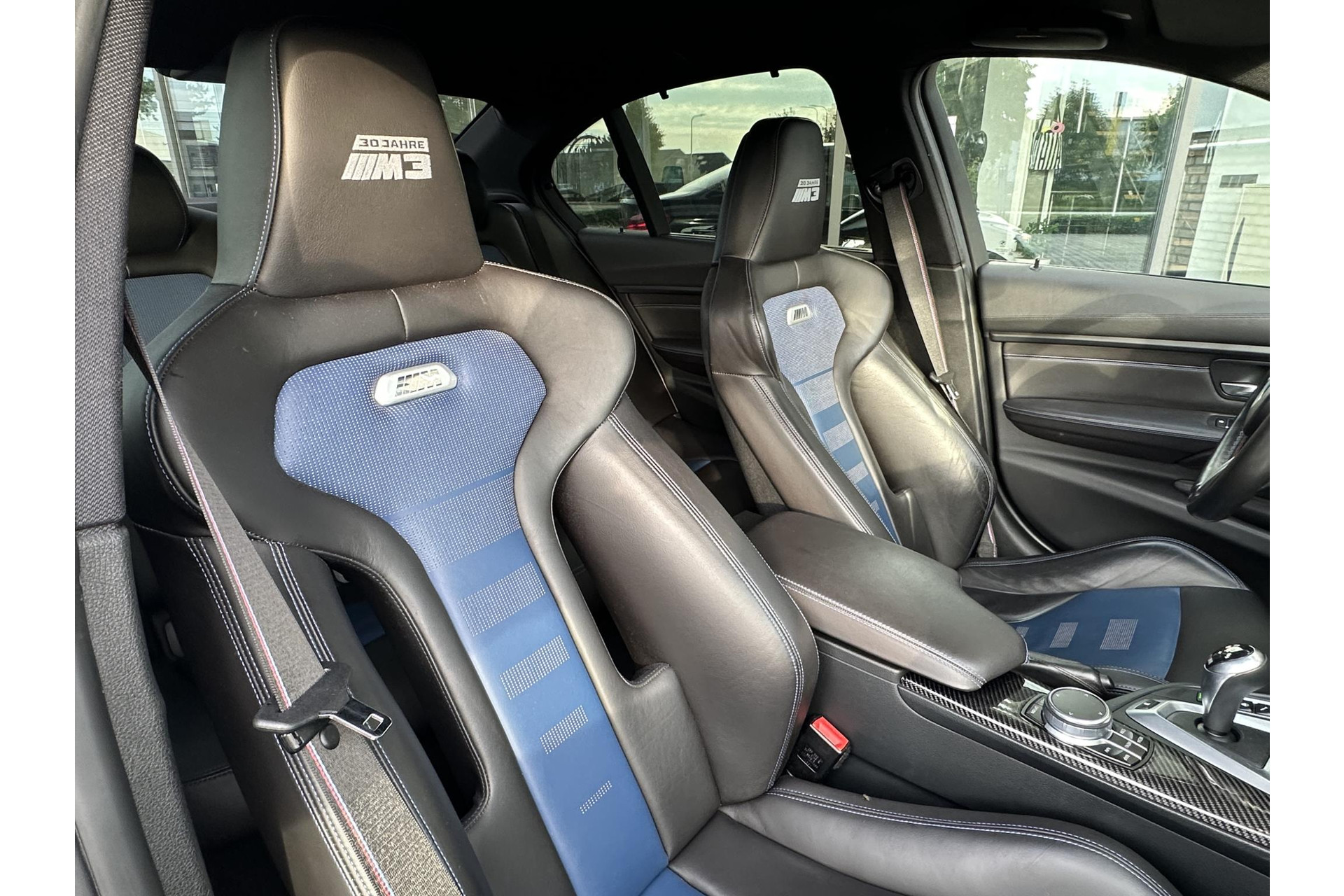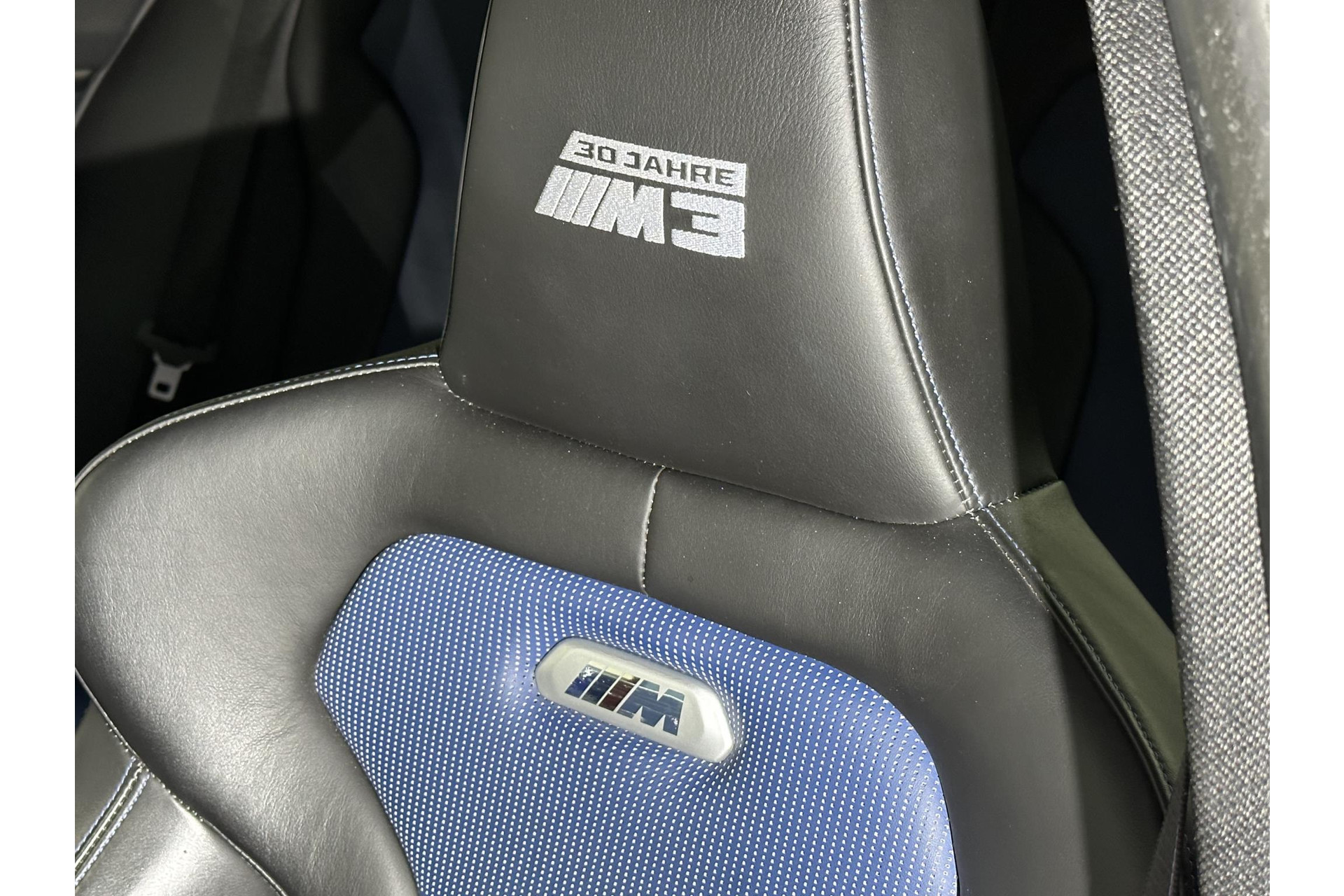 Verder is de 30 Jahre M3 uitgevoerd met speciale logo's op de M-kieuwen van de zijschermen. Maar ook uit de instaplijsten, hoofdsteunen en het dashboard maak je het bijzondere van deze auto op. Vanbinnen vinden we - als onderdeel van het Competition Package - speciale sportstoelen en zelfs op de gordels komen we M-verwijzingen tegen.