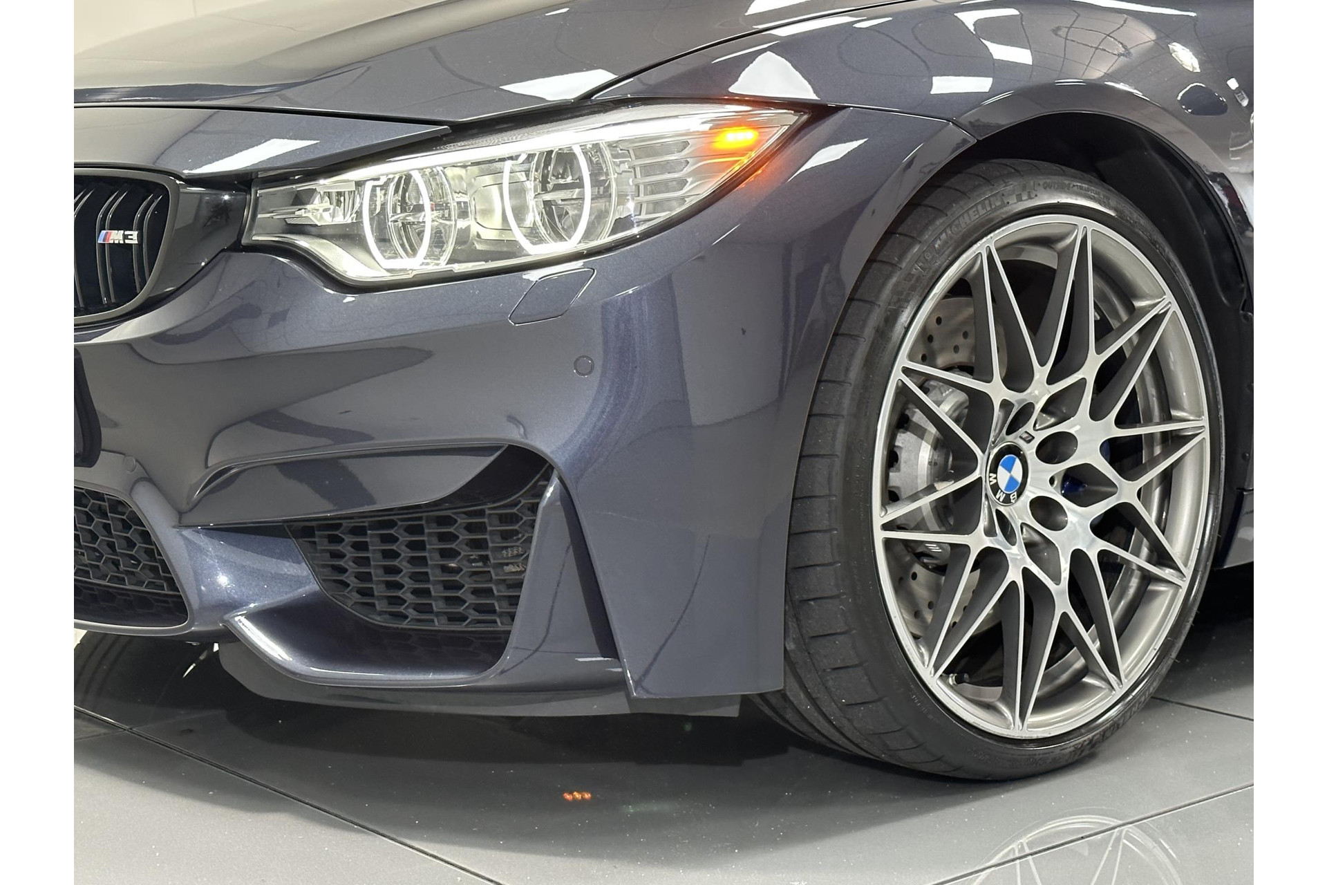 Daarnaast is deze prachtige uitvoering voorzien van het Competition Package, een optie waarmee het vermogen met 19 pk toeneemt tot 450 pk. Daarbij hoort ook het adaptief M-onderstel, en het Active M-sperdifferentieel. Ook speciaal 20-inch lichtmetaal maakt onderdeel uit van dit pakket. Met zijn 450 pk sprint de M3 in 4 tellen naar een snelheid van 100 km/h.