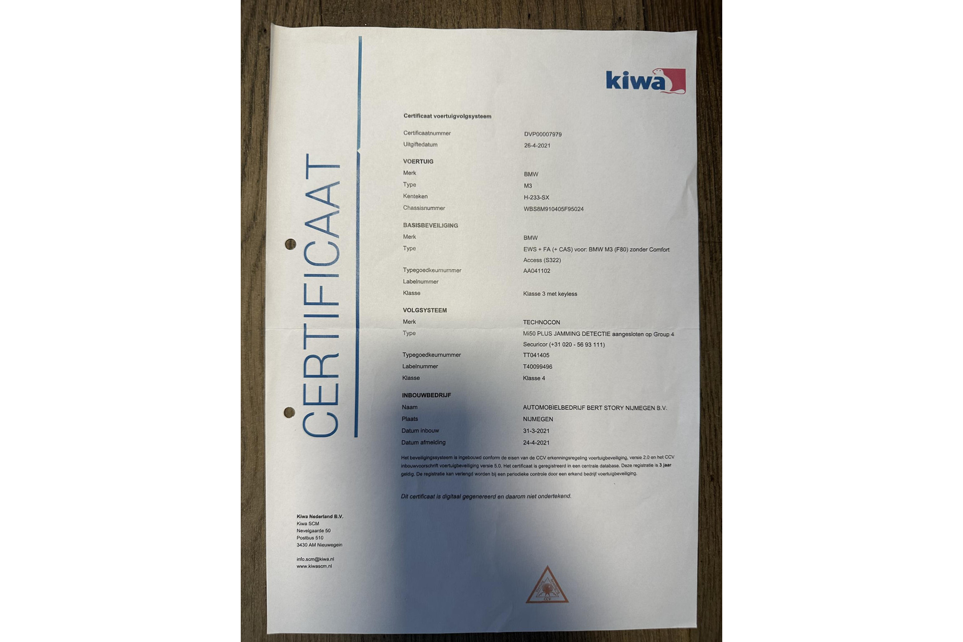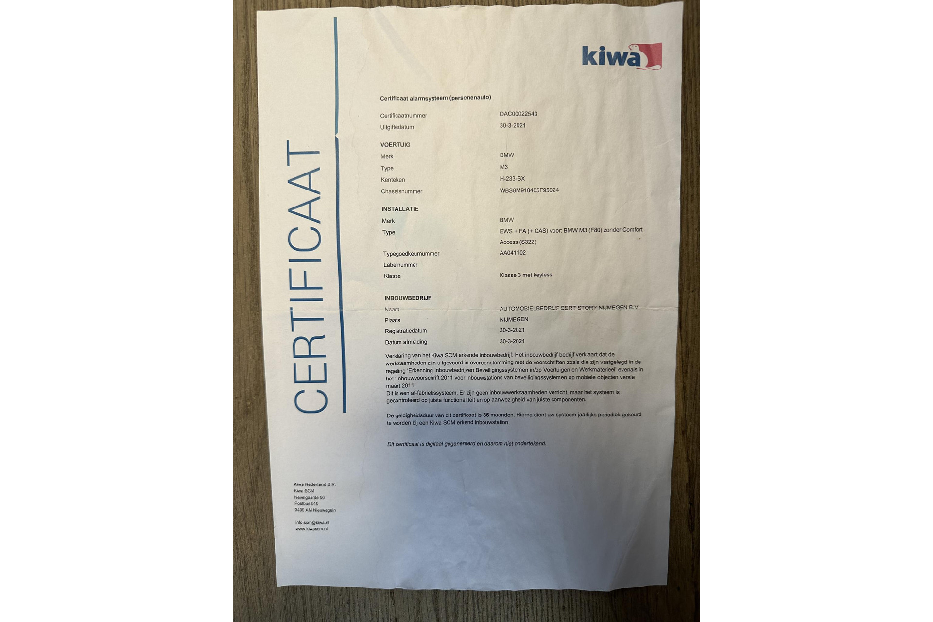 S8SM Auto-ident. Nummer zichtbaar van buitenaf