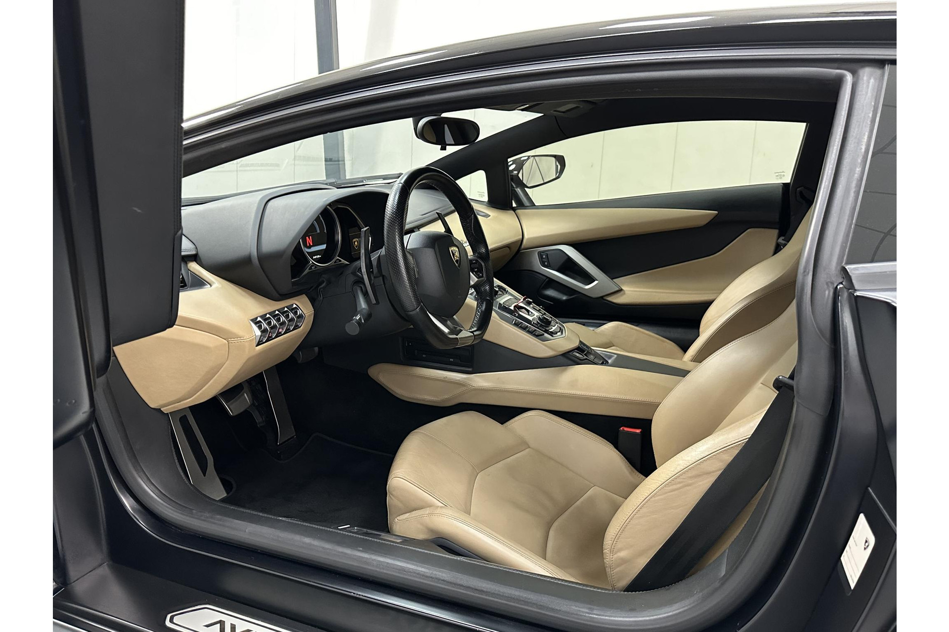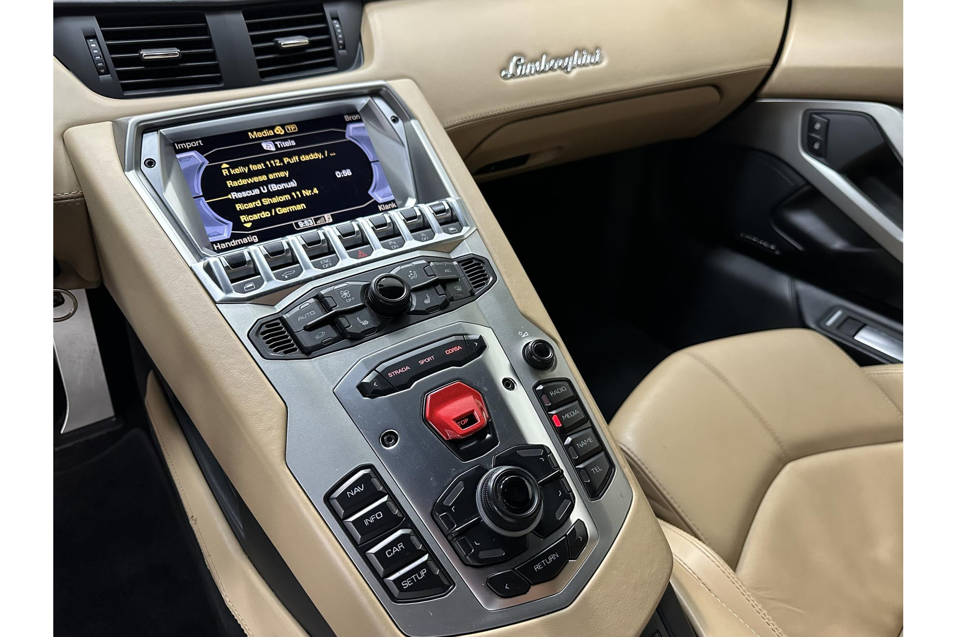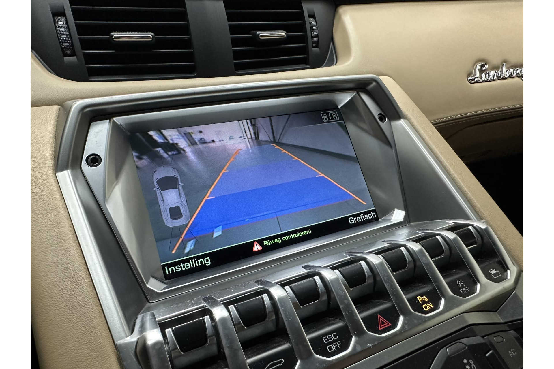 * Lamborghini logo op het dashboard