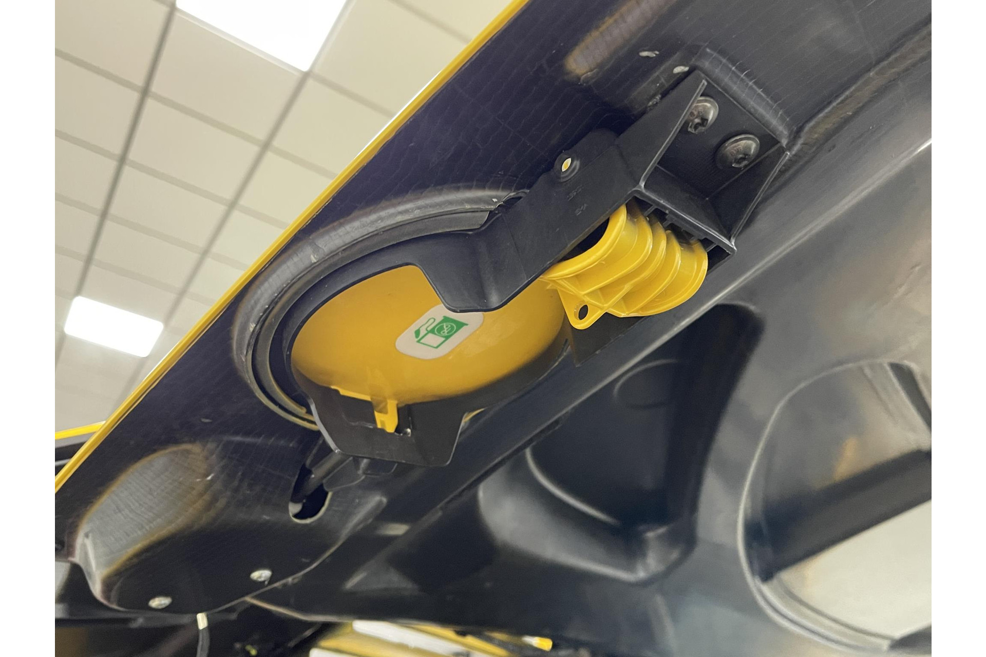 •Geperforeerd zwart lederen interieur met gele ‘’piping’’ en gele stiksel
