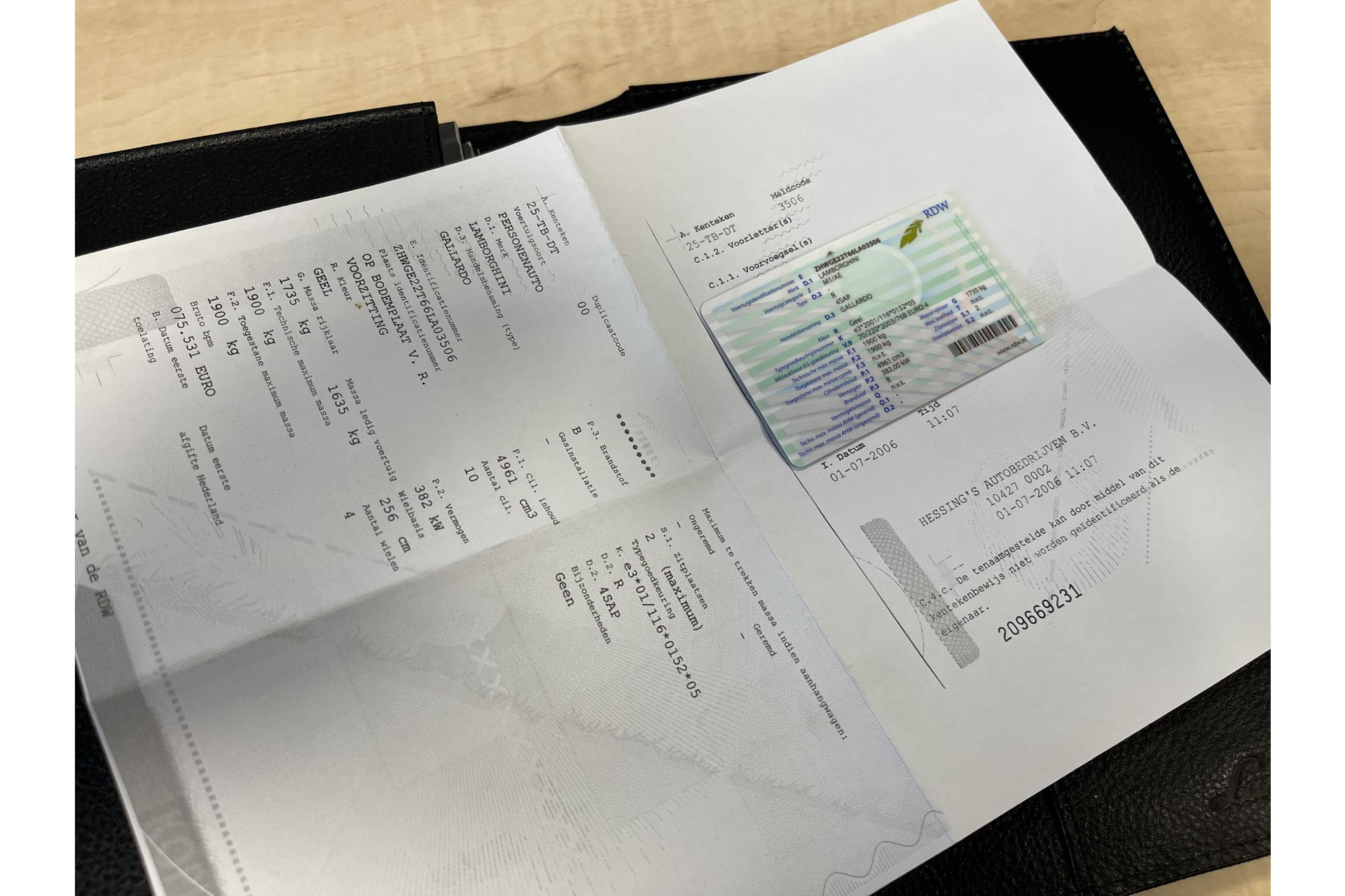 * 01-07-2006 Eerste tenaamstelling 01-07-2006 Lamborghini Hessing