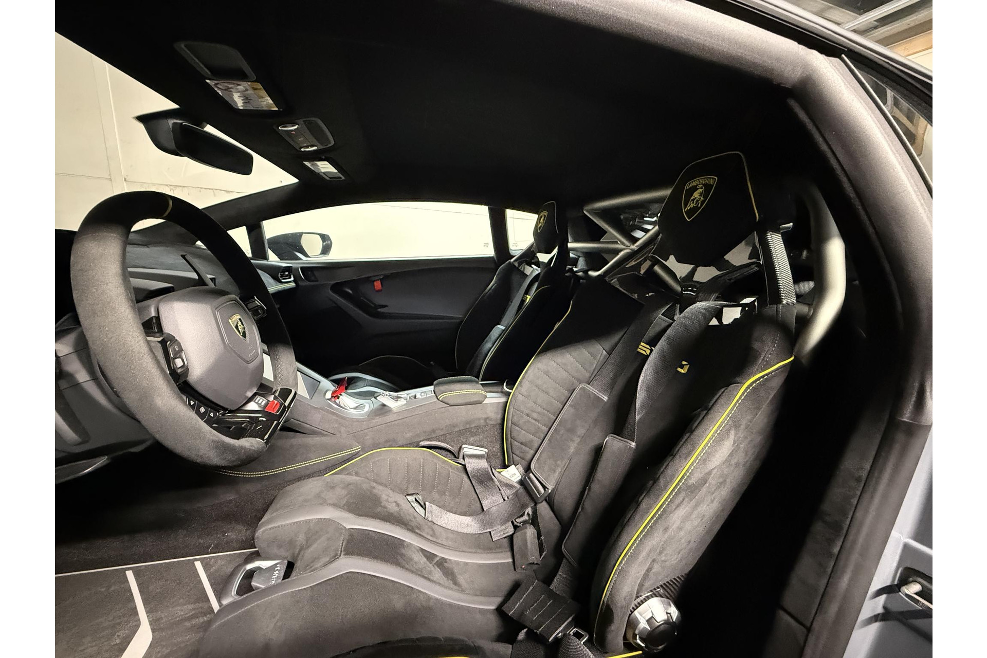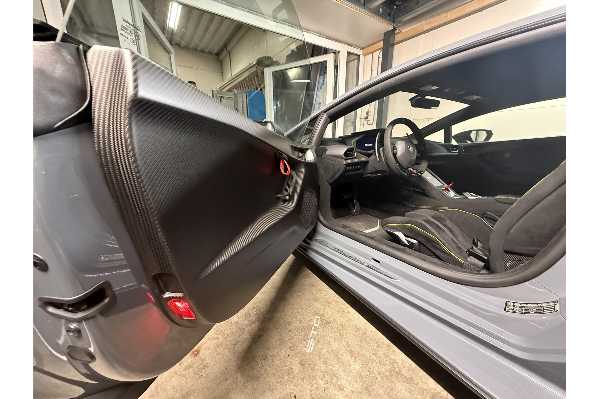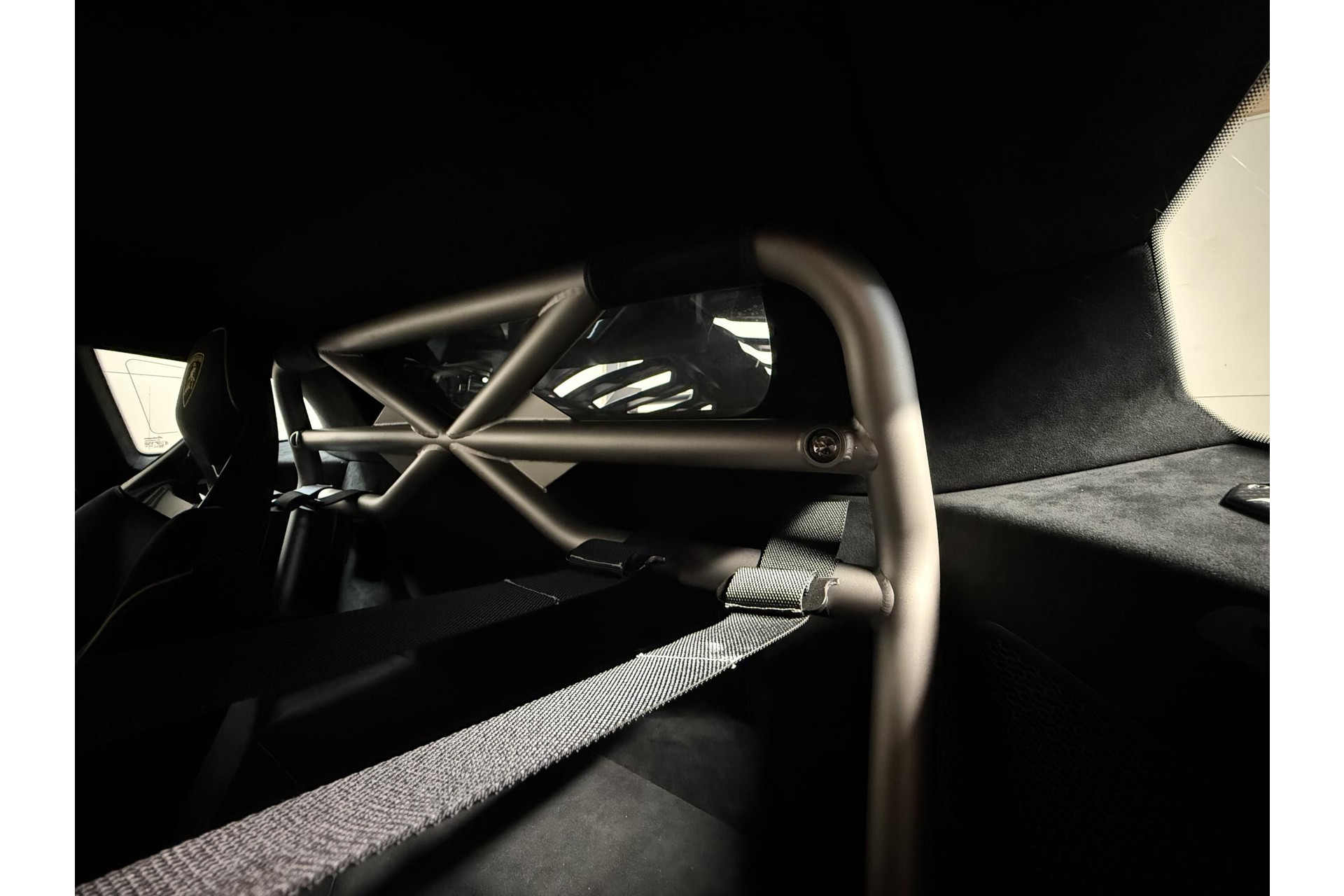 Ad Personam Lamborghini— Speciaal samen gesteld door de klant o.a. kleur Grigio Telesto, Carbon sportstoelen met 4 punts gordels en rolkooi.