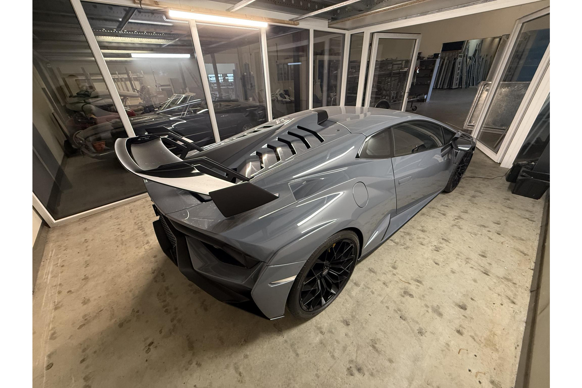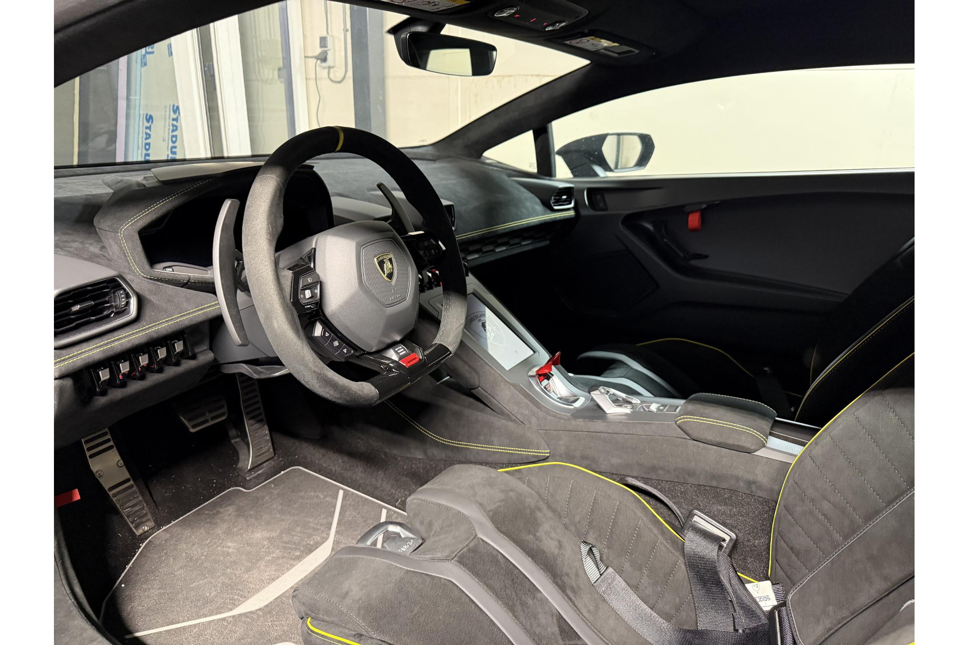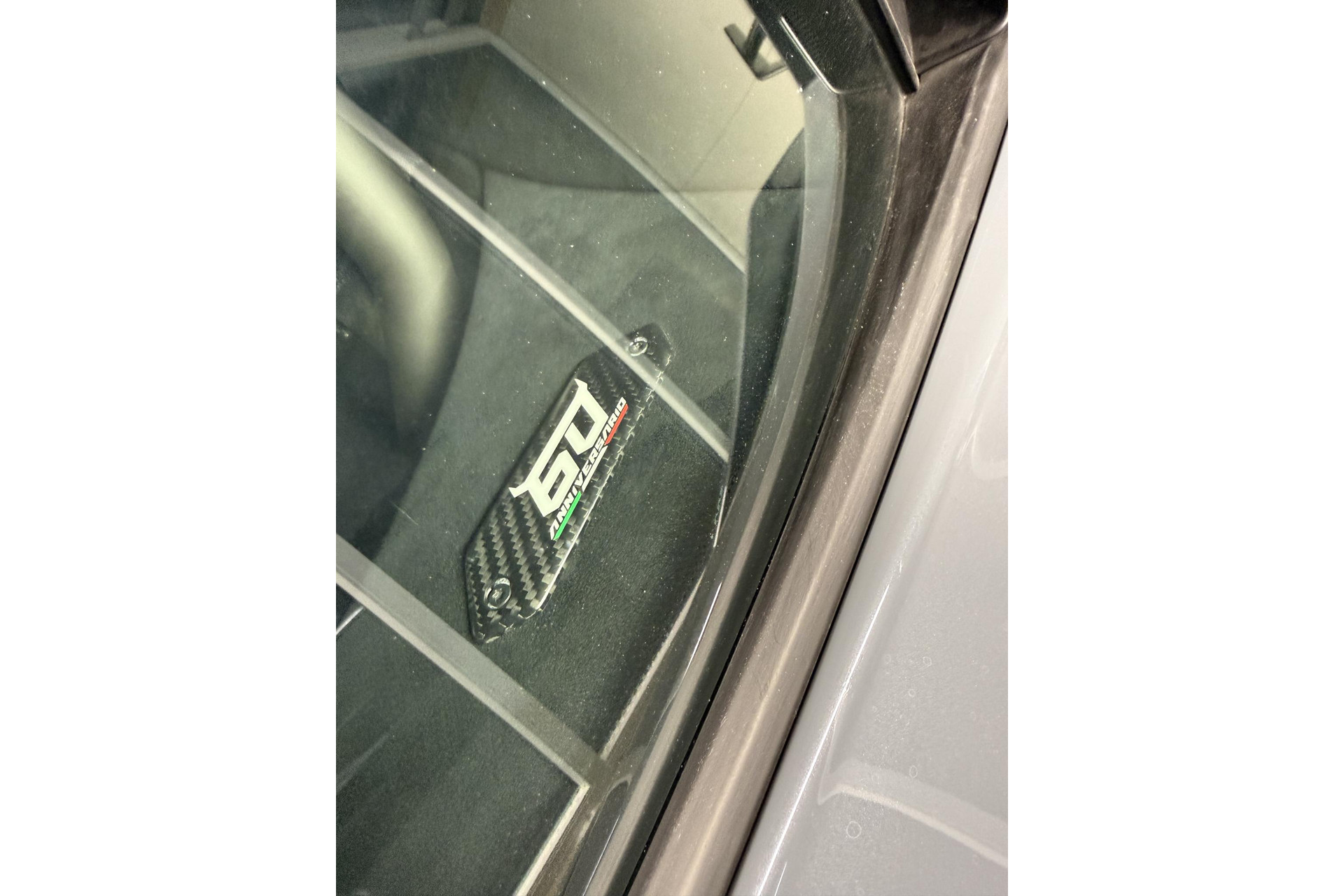 Ad Personam Lamborghini— Speciaal samen gesteld door de klant o.a. kleur Grigio Telesto, Carbon sportstoelen met 4 punts gordels en rolkooi.