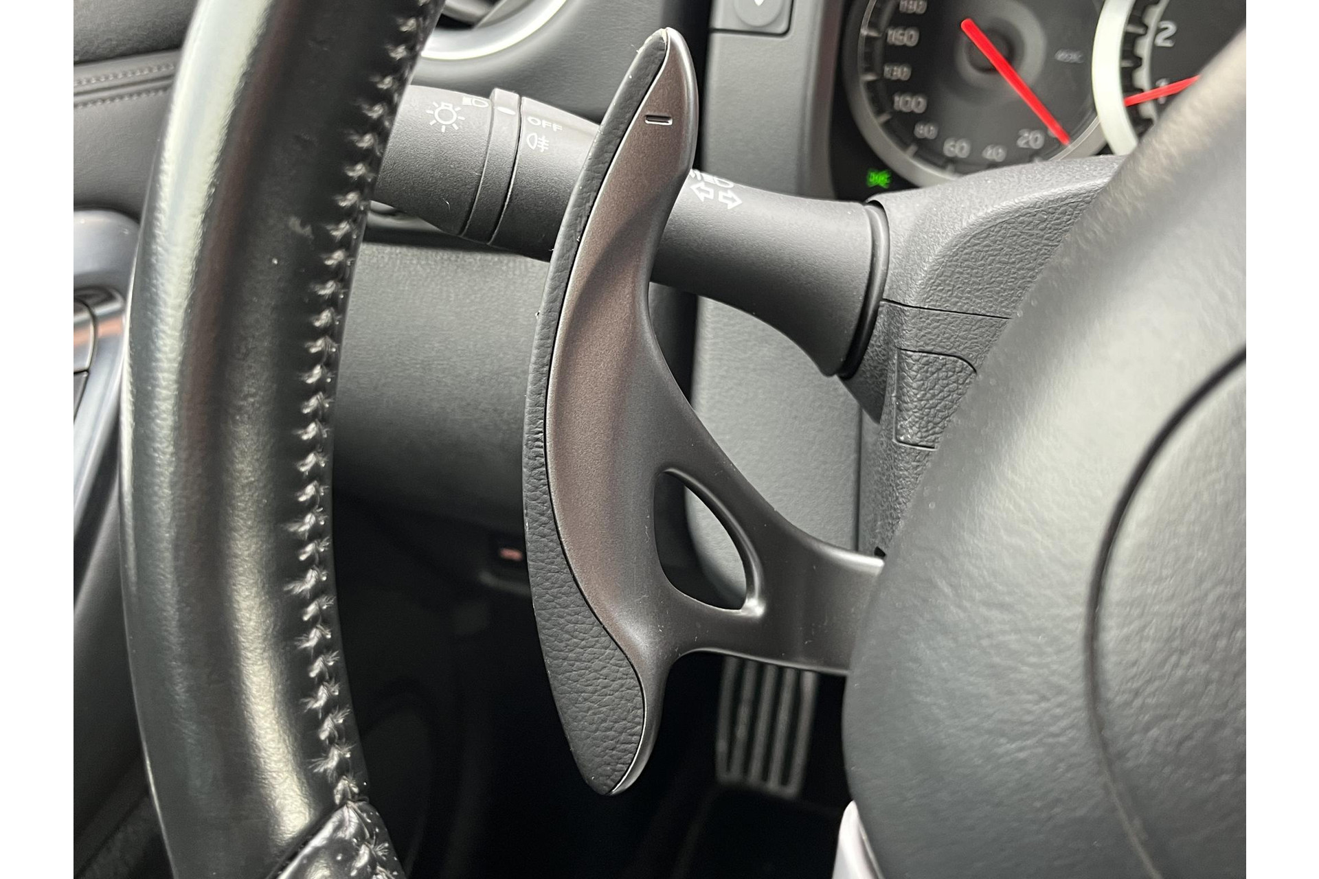 lederen stuurwiel en versnellingspook